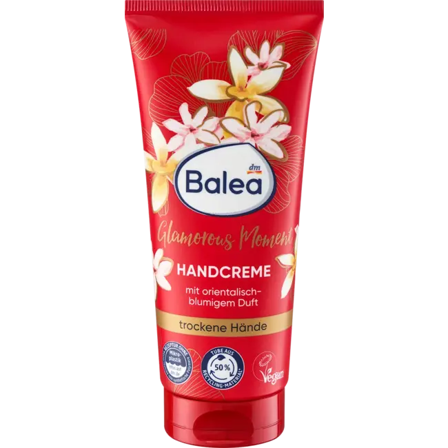 De Glamorous Moment handcrème van Balea is de perfecte verzorging voor droge handen, vooral in het koude seizoen. De crème laat de huid achter met een verleidelijke geur en een soepel gevoel. Recept zonder microplastics & wateroplosbare, puur synthetische Lees meer.