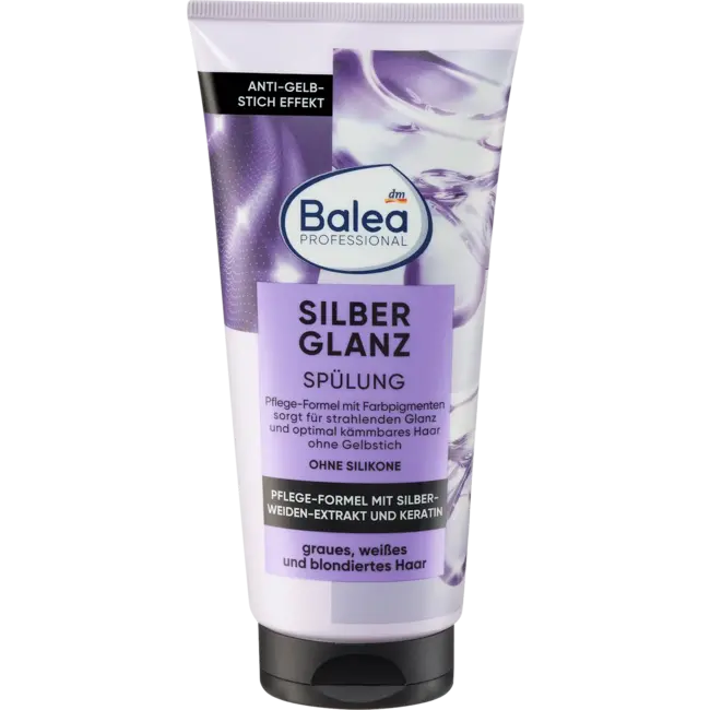 De Silver Shine Conditioner van Balea Professional maakt het haaroppervlak zacht glad en zorgt voor makkelijke kambaarheid. De conditioner is ideaal voor grijs, wit en gebleekt haar en zorgt voor een anti-vergelingseffect.