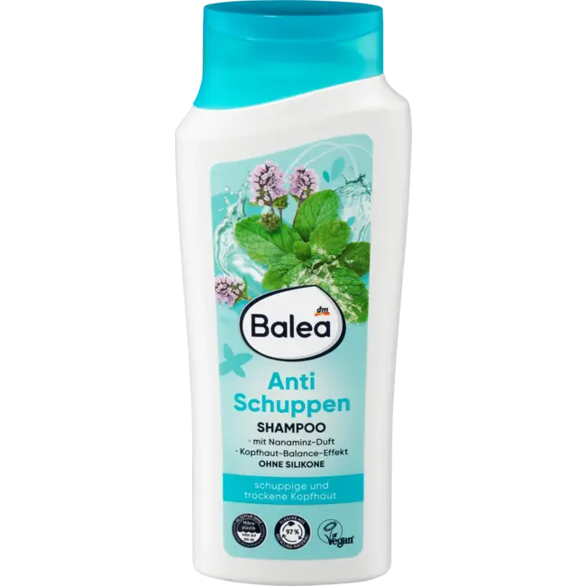 De anti-roosshampoo van Balea heeft een bijzonder effectieve verzorgende formule en bevrijdt de hoofdhuid tijdens gebruik van roos. Het bevat ook een bouwcomplex met vitamine B3 en provitamine B5. Zonder microplastics en wateroplosbare synthetische polymeren.