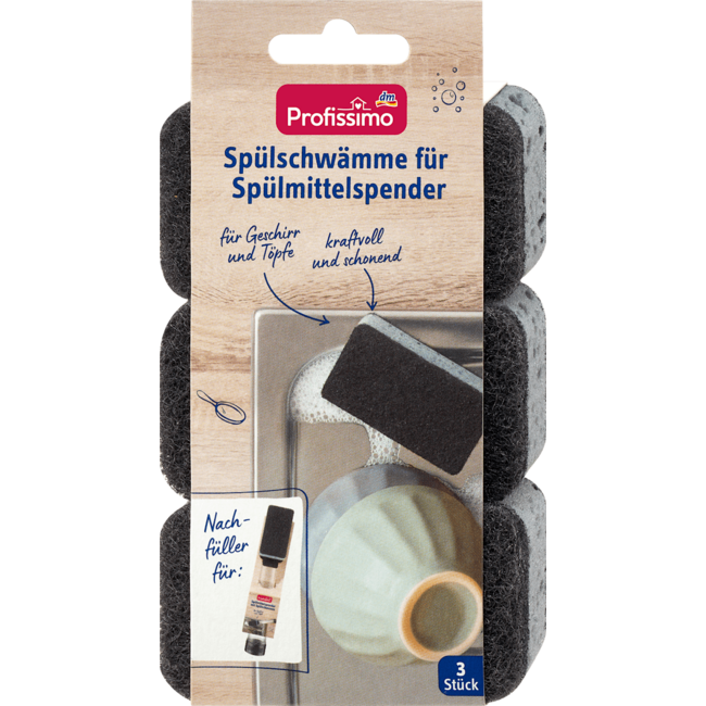 De borden- en pannensponsjes voor de Profissimo afwasmiddeldispenser zijn ideaal voor het afspoelen van borden, glas en glaskeramiek, maar zijn ook ideaal voor potten, pannen en roosters. De sponskoppen zijn gemakkelijk uitwisselbaar. Lees meer.
