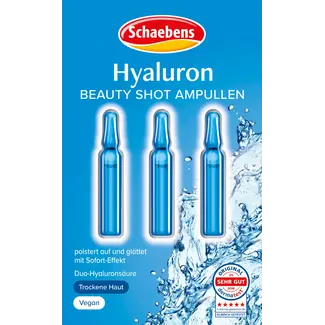 De Hyaluron Beauty Shot ampullen van Schaebens zijn ideaal voor de droge huid. Ze zorgen voor onmiddellijke opvulling en voorzien de huid van intensief vocht. Het Duo Hyaluronzuur kan het vochtgehalte van de huid tot 48% verbeteren. Lees meer.